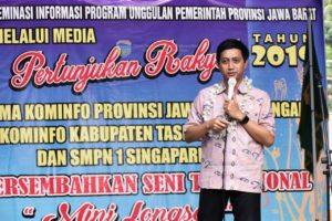 TASIKMALAYA – Inovatif89.com. Dinas Komunikasi dan Informatika (Diskominfo) Provinsi Jawa Barat bekerjasama dengan Diskominfo Kabupaten Tasikmalaya mengadakan kegiatan Diseminasi Informasi Melalui Media Pertunjukan Rakyat, Kamis (01/08/2019), bertempat di SMPN 1 Singaparna, Kabupaten Tasikmalaya, Provinsi Jawa Barat.