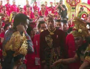 Presiden Joko Widodo menghadiri peresmian Pembukaan Kongres V Partai Demokrasi Indonesia Perjuangan (PDIP) yang digelar di Hotel Grand Inna Bali Beach, Kota Denpasar, Provinsi Bali, pada Kamis, 8 Agustus 2019. Presiden berharap kongres tersebut bisa menghasilkan keputusan terbaik bagi partai, bangsa, dan negara.