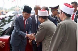 Presiden Joko Widodo dan Perdana Menteri (PM) Malaysia Mahathir Mohamad menunaikan ibadah salat jumat bersama selepas agenda jamuan santap siang resmi. Keduanya beranjak menuju Masjid Putra yang tak jauh dari kantor Mahathir di Putrajaya sekira pukul 13.24 waktu setempat.