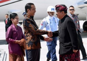 Setibanya di Bandar Udara Internasional I Gusti Ngurah Rai, Kabupaten Badung, Presiden dan rombongan akan disambut oleh Gubernur Bali I Wayan Koster, Pangdam IX/Udayana Mayjen TNI Benny Susianto, dan Kapolda Bali Irjen Pol. Petrus Reinhard Golose.