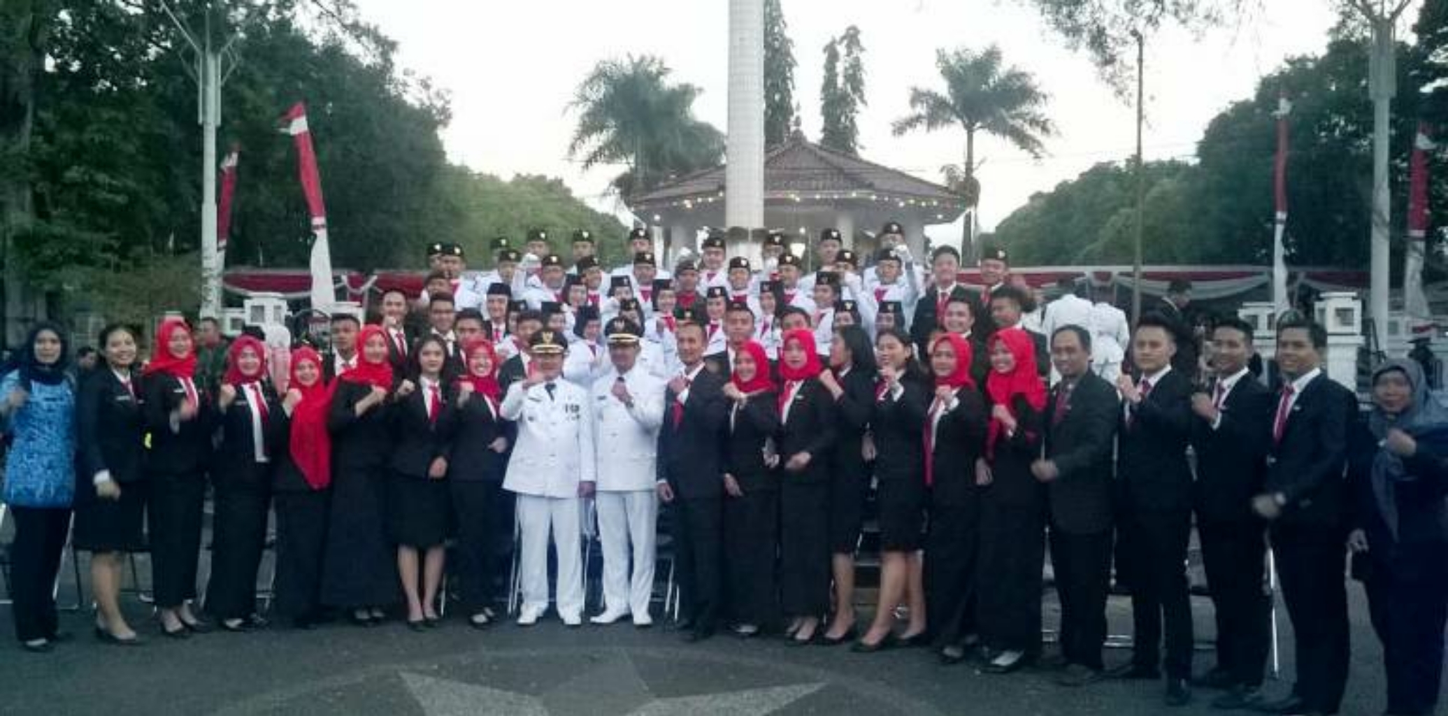 Bupati Garut H. Rudy Gunawan, SH., MH., MP, bertindak sebagai Inspektur upacara penurunan bendera merah putih. Turut dihadiri oleh jajaran Forum Koordinasi Pimpinan Daerah (Forkopimda) Kabupaten Garut, Sekretaris Daerah beserta pejabat utama dilingkungan Pemkab Garut, para veteran, serta undangan lainnya.