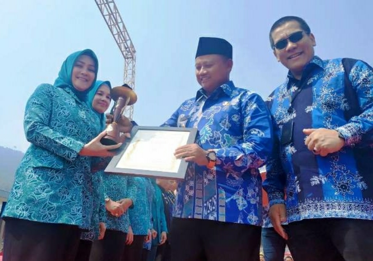 Penghargaan tersebut secara simbolis diserahkan oleh Wakil Gubernur Jawa Barat, H. Uu Ruzhanul Ulum SE, sesaat setelah membuka acara Peringatan Hari Keluarga Nasional (Harganas) XXVI dan Hari Anak Nasional (HAN) 2019 tingkat provinsi Jawa Barat yang bertempat di Lapangan Cangehgar Pelabuhan Ratu, Kabupaten Sukabumi, Provinsi Jawa Barat, Kamis (29/08/2019).