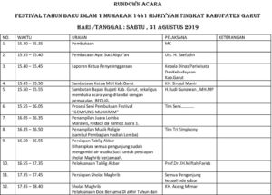 Sementara agenda yang telah direncanakan Pemkab Garut dalam Festival Tahun Baru Islam akan kolaborasi bersama antara pemerintah daerah dengan MUI Kabupaten Garut, DKM Masjid Agung, organisasi Islam dan pondok pesantren di wilayah Kabupaten Garut, serta Balai Pelestarian Nilai Budaya (BPNB) Provinsi Jawa Barat.