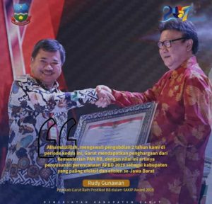 “Alhamdulillah, mengawali pengabdian dua tahun kami di periode kedua ini, Garut mendapatkan penghargaan dari pemerintah pusat melalui Kementerian PAN RB, dengan nilai ini artinya penyusunan perencanaan APBD 2019 sebagai Kabupaten yang paling efektif dan efisien se-Jawa Barat,” ungkap Rudy.