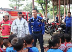 “Anak-anak sangat antusias, kami mengenalkan setiap alat yang digunakan bahkan mereka dengan tertib serta dibimbing memadamkan api kecil dengan alat sederhana,” ujarnya.
