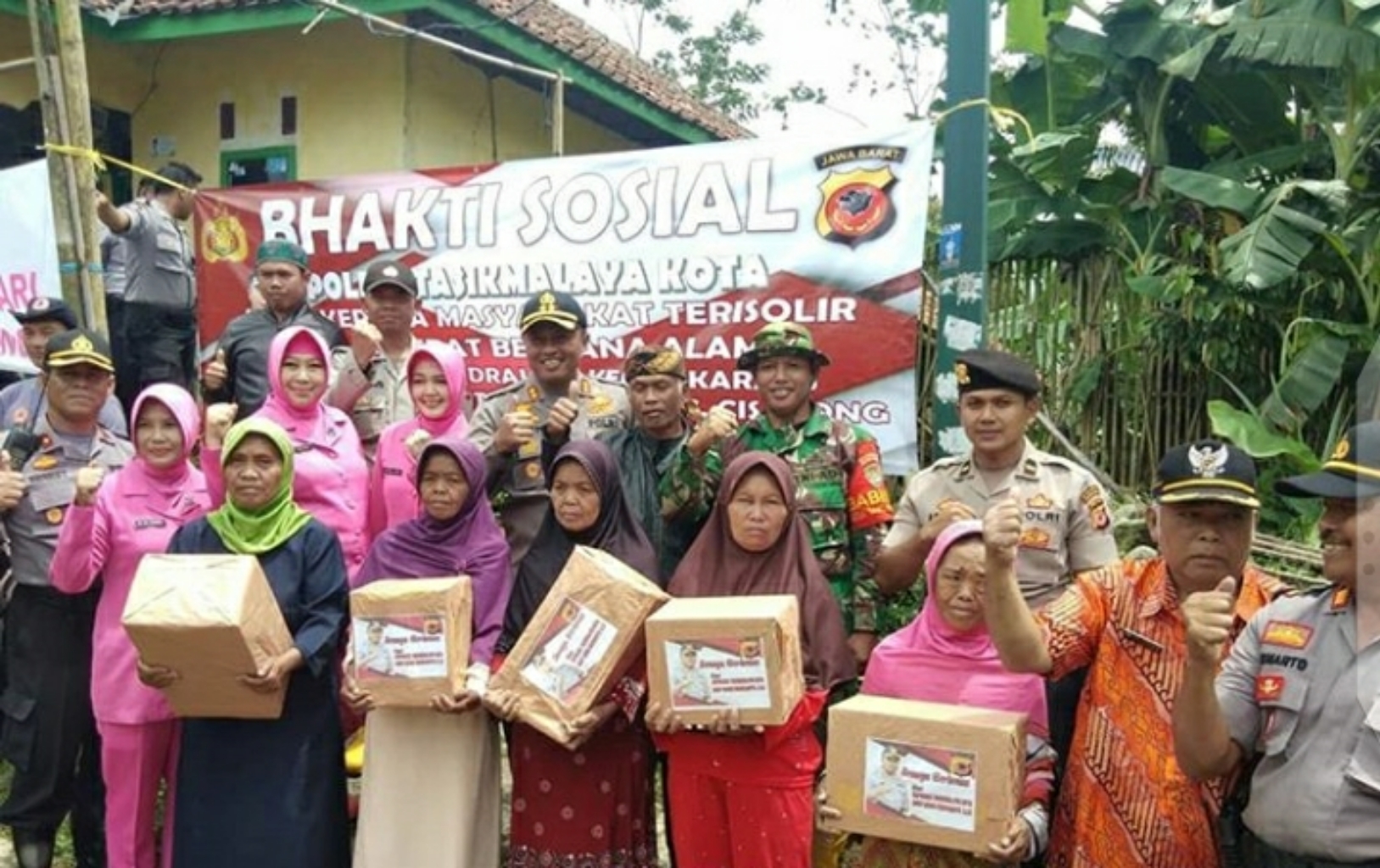 Inovatif89.com — Kapolres Tasikmalaya Kota AKBP. Anom Karibianto, S.IK, beserta Ketua Bhayangkari Cabang Tasikmalaya Kota Ny. Dwi Anom Karibianto memberikan bantuan kepada ratusan masyarakat di tiga ke RT an Kampung Palasari Tonggoh wilayah Desa Santanamekar Kecamatan Cisayong dan Desa Indrajaya Kecamatan Sukaratu, Kabupaten Tasikmalaya, Provinsi Jawa Barat yang terisolir, Kamis (05/03/2020) siang.