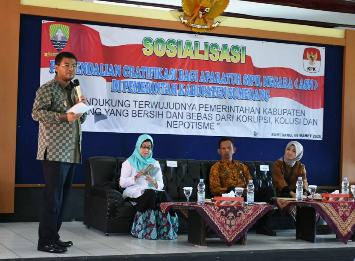 Selain itu, Wabup Sumedang H. Erwan mengatakan, setiap gratifikasi kepada pegawai negeri atau penyelenggara negara dianggap pemberian suap, apabila berhubugan dengan jabatannya dan berlawanan dengan kewajiban atau tugasnya, kecuali jika penerima melaporkan gratifikasi yang diterimanya kepada KPK.