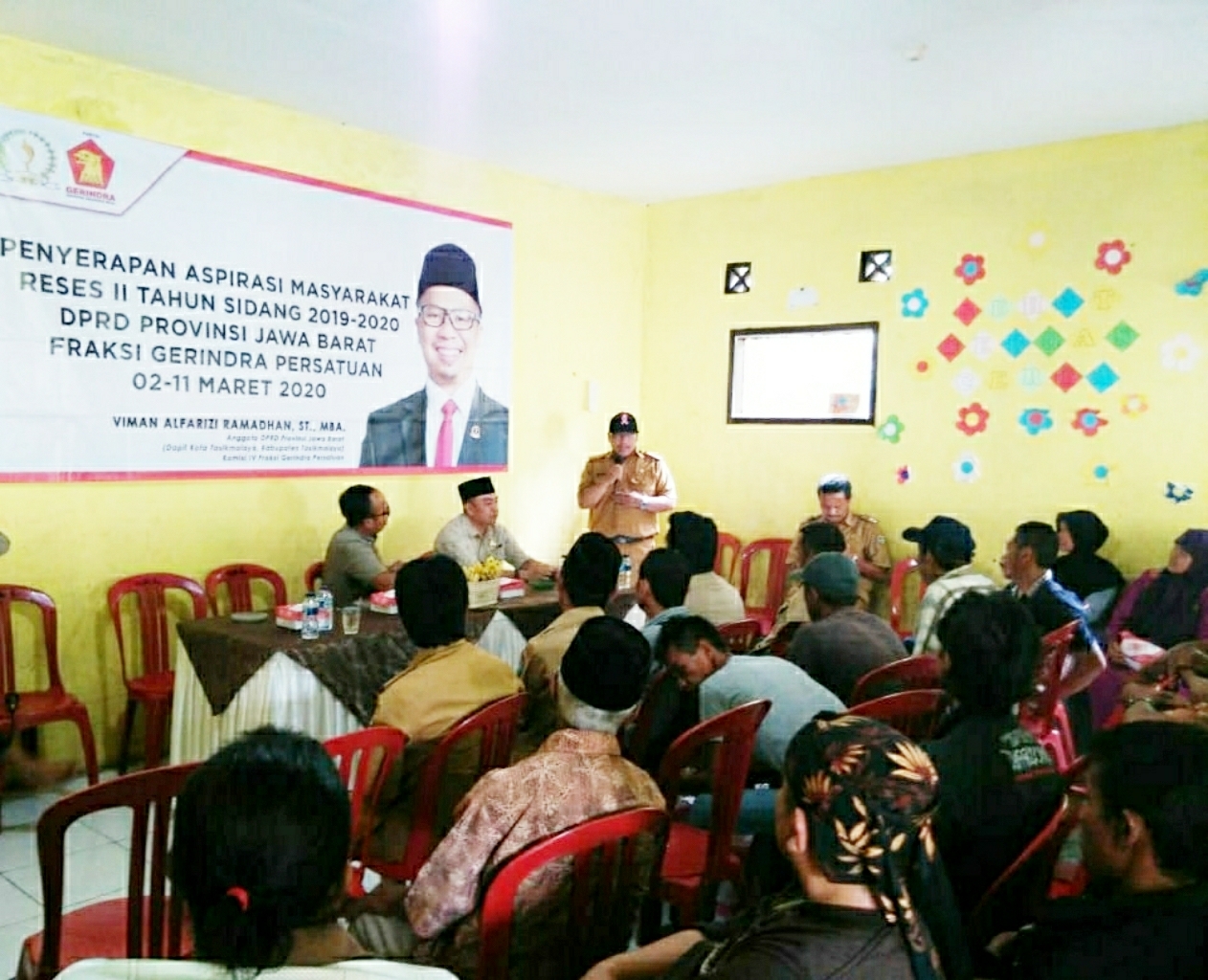 Inovatif89.com — Anggota DPRD Provinsi Jawa Barat komisi IV fraksi Gerindra, Viman Alfarizi Ramadhan, ST., MBA, didampingi anggota DPRD Kabupaten Tasikmalaya komisi III fraksi Gerindra, Dadang Rachmat Alfaruq, S.Pd.I., MH, menggelar reses masa persidangan II tahun 2019 – 2020, bertempat di Madrasah Diniyah (MD) Kp. Cibahayu, Dusun Langkob, Desa Cibahayu, Kecamatan Kadipaten, Kabupaten Tasikmalaya, Provinsi Jawa Barat, Senin (09/03/2020).