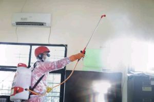 Inovatif89.com — Wakil Walikota Tasikmalaya Drs. H. M. Yusuf memantau pelaksanaan penyemprotan disinfektan dalam upaya pencegahan penyebaran COVID-19 di wilayah Komplek Perkantoran Kota Tasikmalaya, Provinsi Jawa Barat, Senin (23/03/2020).