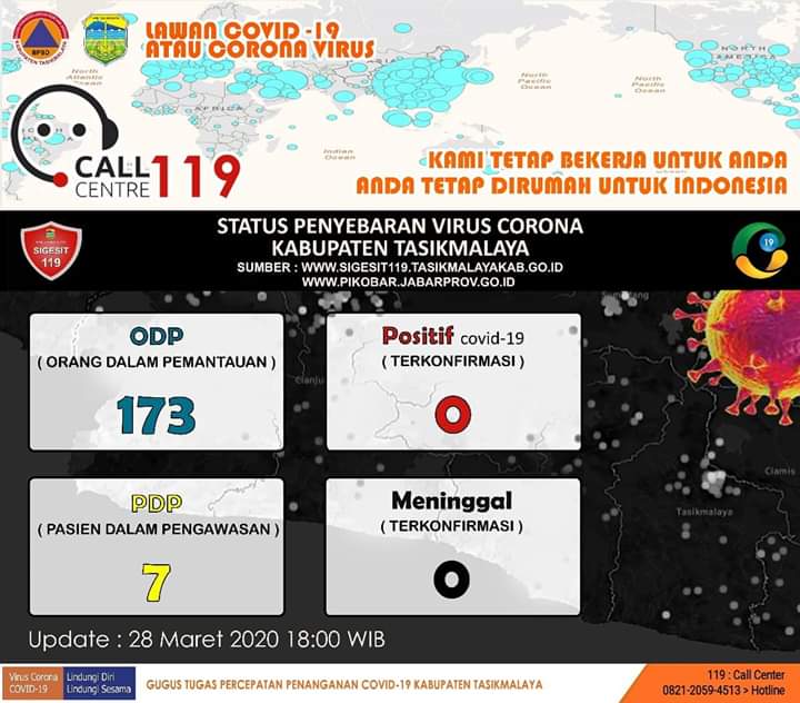 Dan untuk layanan Darurat Penanganan Covid-19 Wilayah Kabupaten Tasikmalaya silahkan Hubungi. Call Center : 119 dan Hotline 0821-2059-4513