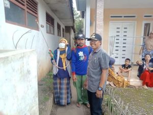 Di hari yang sama, dilakukan penyemprotan cairan desinfektan di Desa Nusawangi Kecamatan Cisayong, penyemprotan dilakukan diseluruh fasiltas umum, untuk mencegah penyebaran Covid-19.
