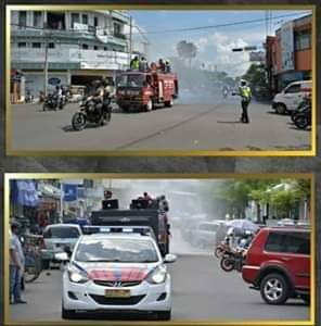 Inovatif89.com — Personel Polres Banjar bersama Tim Gugus Tugas Covid-19 Kota Banjar, melaksanakan penyemprotan cairan disinfektant di jalan protokol, hingga permukiman warga di wilayah Kota Banjar. Upaya ini dilakukan secara bertahap hingga seluruh wilayah disemprot disinfektan.