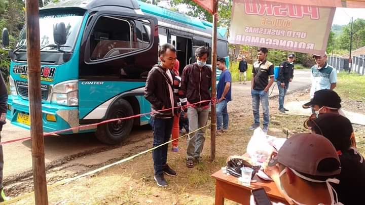 Inovatif89.com — UPT Puskesmas Bojonggambir melalui Posko Covid-19 bersama Forkopimcam Bojonggambir dan Relawan Penanggulangan Bencana melakukan Vehicle Check atau pemeriksaan kendaraan dari luar daerah terdiri dari kendaraan umum dan pribadi untuk mengantisipasi Covid-19. Dilakukan pula sosialisasi dan penyemprotan disinfektan dalam kegiatan tersebut.