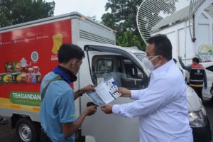 Saat pelaksanaan monitoring, selain ikut memeriksa orang yang diberhentikan untuk dilakukan cek kesehatan, Budi dan Yusuf juga sempat memberikan bahan edukasi dan informasi dengan memberikan leaflet tentang COVID-19.