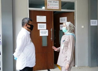 Disela-sela kegiatannya tersebut, Rudy Gunawan menyempatkan diri mengecek ke Ruangan Isolasi Covid-19, berkomunikasi dan menanyakan kondisi pasien positif Covid-19 kepada dokter petugas piket yaitu, dr. Melly Ismelia, Sp.PD, Dokter Sesialis Penyakit Dalam.