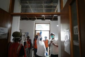 Selanjutnya, Bupati Rudy, melihat beberapa ruangan di lantai satu yang sedang dalam pengerjaan, diantaranya, beberapa plafon atas yang sudah d terbuka, sedang dicheck jalur saluran air yang sempat terjadi kebocoran.