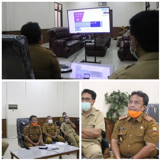 Inovatif89.com — Sekretaris Daerah (Sekda) Kabupaten Sumedang bersama Asisten Administrasi, Asisten Pembanguan dan Kadiskominfosanditik dengan para kepala SKPD se-Kabupaten Sumedang melaksanakan meeting online, bertempat di di Ruang Cakrabuana IPP Kabupaten Sumedang, Provinsi Jawa Barat, Senin (13/04/2020).