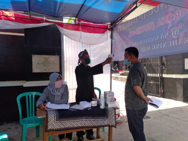 Pendirian posko Covid-19 tersebut selain mengantisifasi lonjakan pemudik dari luar kota untuk didata, diseterikan dengan di semprot cairan disinfektan, cek suhu tubuh, cek darah, diberi pemahaman tentang sosial distancing, dan karantina mandiri selama 14 hari, juga memriksa suhu tubuh dan lainnya kepada tamu yang datang ke kantor desa.