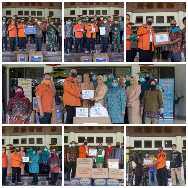 3. Badan Musyawarah Perbankan Daerah Priangan Timur memberikan bantuan berupa masker N95 sebanyak 100 buah, Face Shield sebanyak 100 buah, Google Glass 20 buah dan cairan disinfektan sebanyak 60 liter.