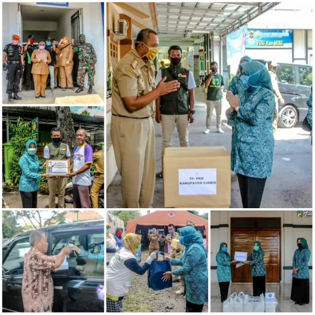 Selain itu, Istri Bupati Ciamis (Hj. Kania) juga memberikan bantuan berupa Alat Pelindung Diri (APD) serta Extra Food kepada RSUD Ciamis, Puskemas Ciamis dan beberapa Posko Percepatan Penanganan Covid-19 di wilayah Kabupaten Ciamis.