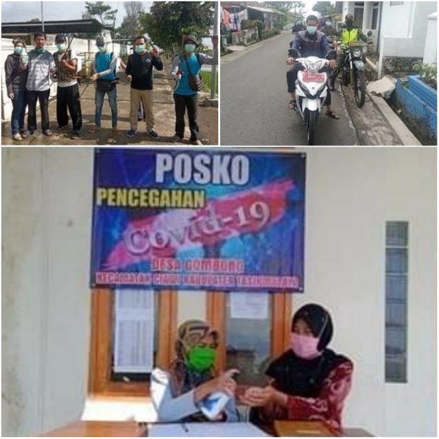 Inovatif89.com — Dalam upaya memutus mata rantai penyebaran Virus Corona atau Covid-19, Pemerintah Desa (Pemdes) Gombong melalui Satuan Tugas (Satgas) bersama Relawan Penanggulangan Bencana (RPB) melakukan sosialisasi kesetiap dusun, pemasangan spanduk pencegahan Covid-19, dan penyemprotan cairan disinfektan di berbagai fasilitas publik yang ada di Desa Gombong, Kecamatan Ciawi, Kabupaten Tasikmalaya, Provinsi Jawa Barat, Sabtu (18/04/2020).
