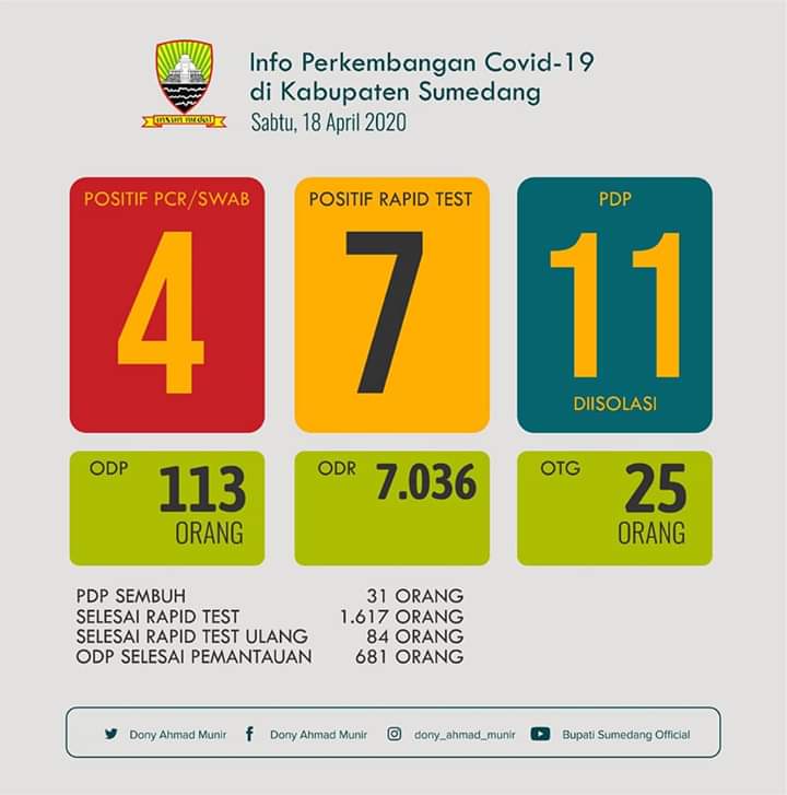 lanjut Dony, untuk info terbaru Covid-19 telah terjadi penambahan yang positif hasil tes swab menjadi 4 orang.