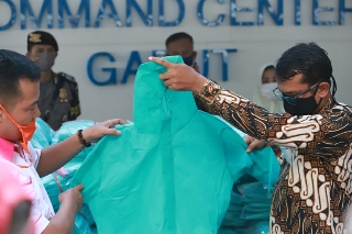 “Ini masih panjang, kebutuhan memang masih banyak. Untuk satu shif saja di RSUD dr. Slamet mebutuhkan sampai 12 APD itu baru di ruangan isolasi, belum lagi ditambah tenaga medis yang ada di setiap Puskesmas,” imbuhnya.