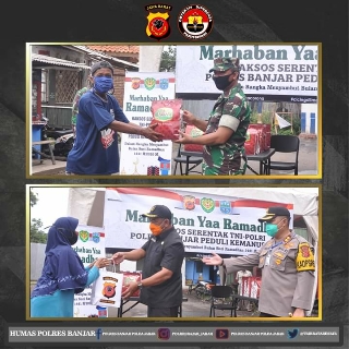 Bakti sosial ini, Polres Banjar Peduli Kemanusiaan membagikan paket sembako sebanyak 150 paket sembako kepada masyarakat. Ini dilakukan guna membantu beban ekonomi warga ditengah pandemi Covid-19 dan menyambut bulan ramadhan.