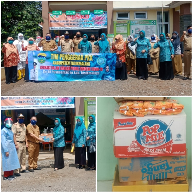 Inovatif89.com — Dalam rangka upaya pemenuhan kebutuhan masyarakat Kabupaten Tasikmalaya selama status siaga bencana wabah Coronavirus Disease 19 (Covid-19), Ketua TP PKK Kab. Tasikmalaya @hj.aidiantanisugianto memberikan bantuan alat pelindung diri (APD) seperti masker, handsanitizer, sabun cuci tangan serta makanan pendukung kesehatan seperti vitamin C, mie instan, biskuit dan lainnya ke puskesmas wilayah Kab. Tasikmalaya yang diserahkan secara langsung, bertempat di Puskesmas: Padakembang, Sukaratu, Cisayong, Sukaresik, Jamanis, Rajapolah, Kadipaten, Pagerageung, Sukahening, dan Ciawi.