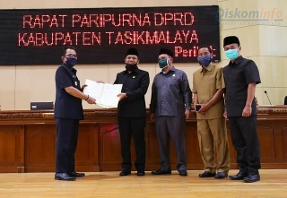 Inovatif89.com — Bupati Tasikmalaya, H. Ade Sugianto, S.IP, menghadiri Rapat Paripurna DPRD dengan agenda utama Penyampaian Laporan Panitia Khusus DPRD Kabupaten Tasikmalaya tentang Laporan Keterangan Pertanggungjawaban (LKPJ) Bupati, bertempat di Ruang Paripurna DPRD Kabupaten Tasikmalaya, Provinsi Jawa Barat, Kamis (30/04/2020).