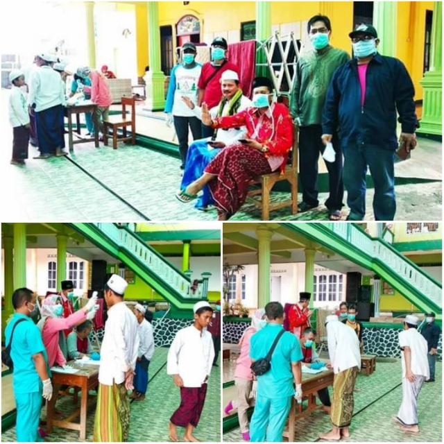 “Para santri yang berbaris menjaga jarak, kami (Petugas Puskesmas) memeriksa dan memberikan edukasi,” ungkapnya.