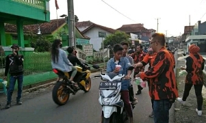 Inovatif89.com — Ormas Pemuda Pancasila Pimpinan Anak Cabang (PP PAC) Kecamatan Rajapolah membagi-bagikan kepada para pengguna jalan yang bertempat di Jl. Rajapolah – Sukahening tepatnya di depan Kantor KUA Kecamatan Rajapolah, Kabupaten Tasikmalaya, Provinsi Jawa Barat, Kamis (07/05/2020) sore.