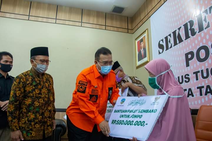 Inovatif89.com — Badan Amil Zakat Nasional (Baznas) Kota Tasikmalaya menyerahkan bantuan sosial (Bansos) untuk mustahik terdampak Covid-19, bertempat di Bale Kota Tasikmalaya, Provinsi Jawa Barat, Selasa (19/05/2020).