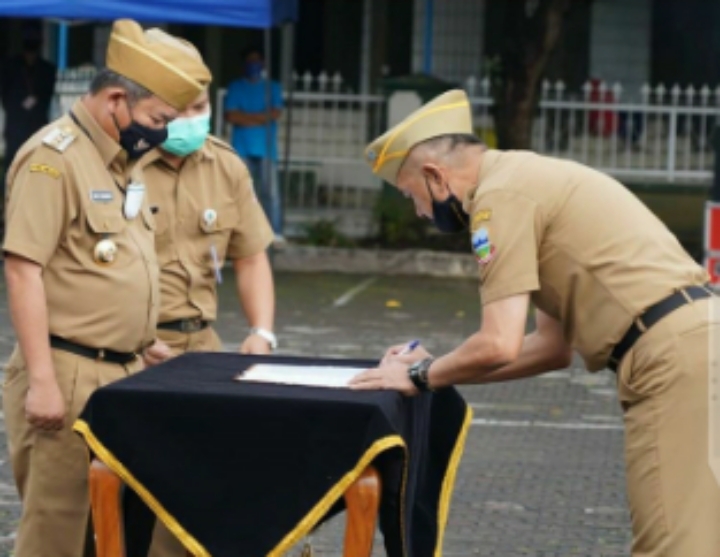 Inovatif89.com — Bupati Garut, H. Rudy Gunawan, SH., MH., MP, melantik Kepala Inspektur Daerah, Drs. H. Zat Zat Munajat, M.Si, sebagai Penjabat (Pj) Sekretaris Daerah (Sekda) Kabupaten Garut, bertempat di Lapang Sekretariat Daerah Kabupaten Garut, Provinsi Jawa Barat, Kamis (28/05/2020).