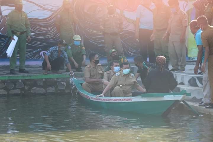Inovatif89.com – Bupati Sumedang Dr. H. Dony Ahmad Munir, ST., MM, menerima langsung pesanan perahu kayu dari Kampung Tohaga, Desa Linggajaya, Kecamatan Cisitu, Kabupaten Sumedang, bertempat di halaman belakang empang Gedung Negara, Kabupten Sumedang, Provinsi Jawa Barat, Senin (29/06/2020).