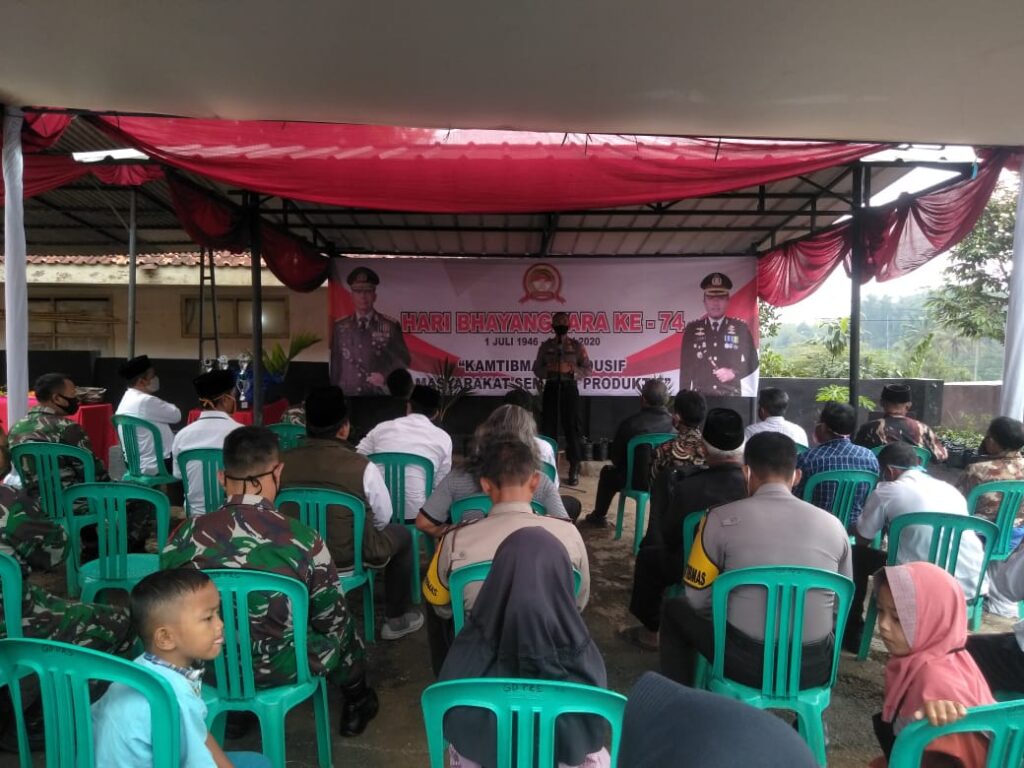 Pada puncak peringatan HUT Bhayangkara, Polsek Jamanis mengadakan acara syukuran dan mengumumkan pemenang lomba Pos Kamling serta memberikan santunan kepada anak yatim, bertempat di Mako Polsek Jamanis, Kabupaten Tasikmalaya, Provinsi Jawa Barat, Rabu (01/07/2020).