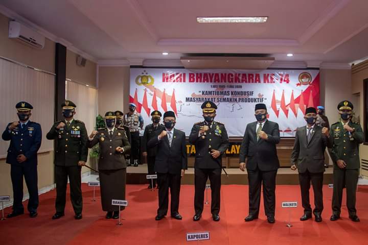 Dalam kesempatan itu, Walikota Tasikmalaya mengucapkan selamat hari Bhayangkara ke 74 serta sangat mengapresiasi kepada kinerja Polri dalam memberikan perlindungan kepada masyarakat untuk memeberikan rasa aman dan nyaman kepada masyarakat Kota Tasikmalaya.