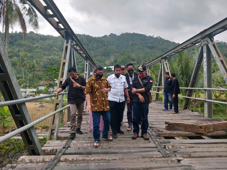 Dipenghujung kunjungan kerjanya di Desa Panyindangan Kecamatan Cisompet, Bupati meninjau jembatan yang sempat terhambat karena jalan jembatan kendaraan yang dilaluinya terhambat batang kayu yang terjungkir.