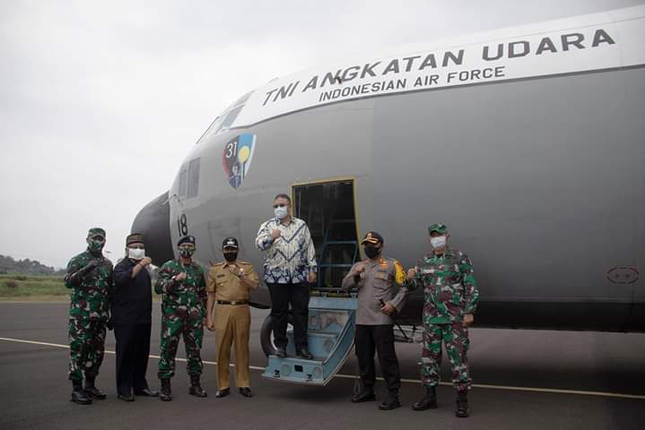 Inovatif89.com – Walikota Tasikmalaya Drs. H. Budi Budiman didamping Wakil Walikota Tasikmalaya Drs. H. Muhamad Yusup, unsur Forkopimda dan tamu Undangan menghadiri test landing dan take off pesawat C-130H, bertempat di Lanud Wiryadinata Kota Tasikmalaya, Provinsi Jawa Barat, Senin (13/07/2020).