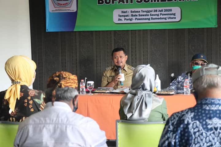 Inovatif89.com – Bupati Sumedang Dr. H. Dony Ahmad Munir, S.T., MM, menghadiri kegiatan silaturahmi Paguyuban Insun Medal (Persatuan Pensiunan Kabupaten Sumedang), bertempat di Bale Sawala Saung Pawenang Jl. Parigi Pawenang, Kecamatan Sumedang Utara, Kabupaten Sumedang, Provinsi Jawa Barat, Selasa (28/07/2020).