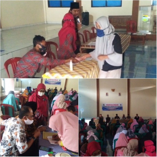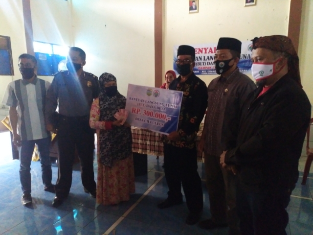 INOVATIF89.COM , TASIKMALAYA — Kepala Desa (Kades) Cileuleus, Anang Hardi secara simbolis menyerahkan Bantuan Langsung Tunai (BLT) Dana Desa (DD) tahap ke V kepada warga terdamapk Covid 19, bertempat di gedung olahraga Desa Cileuleus, Kecamatan Cisayong, Kabupaten Tasikmalaya, Provinsi Jawa Barat, Sabtu (03/10/2020).