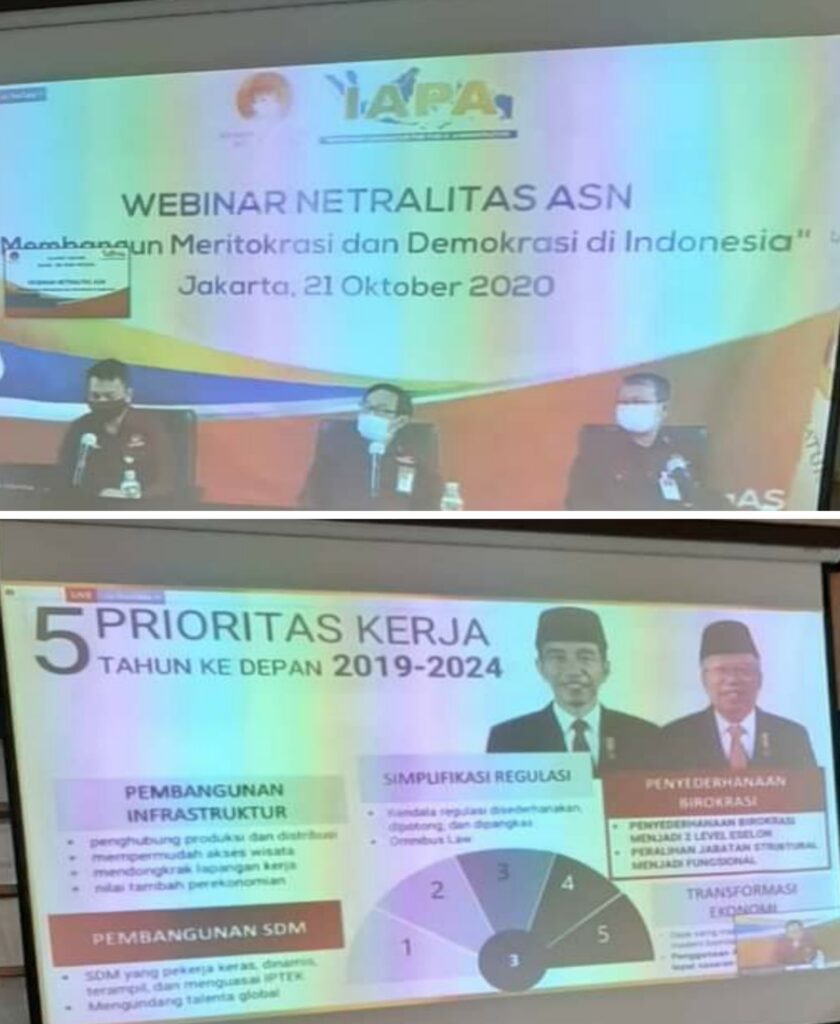 INOVATIF89.COM , TASIKMALAYA — Pemerintah Daerah (Pemda) Kabupaten Tasikmalaya mengikuti kegiatan webinar netralitas Aparatur Sipil Negara (ASN) yang mengusung tema Membangun Meritrokasi dan Demokrasi di Indonesia, bertempat di ruang rapat Wakil Bupati Tasikmalaya, Provinsi Jawa Barat, Rabu (21/10/2020).