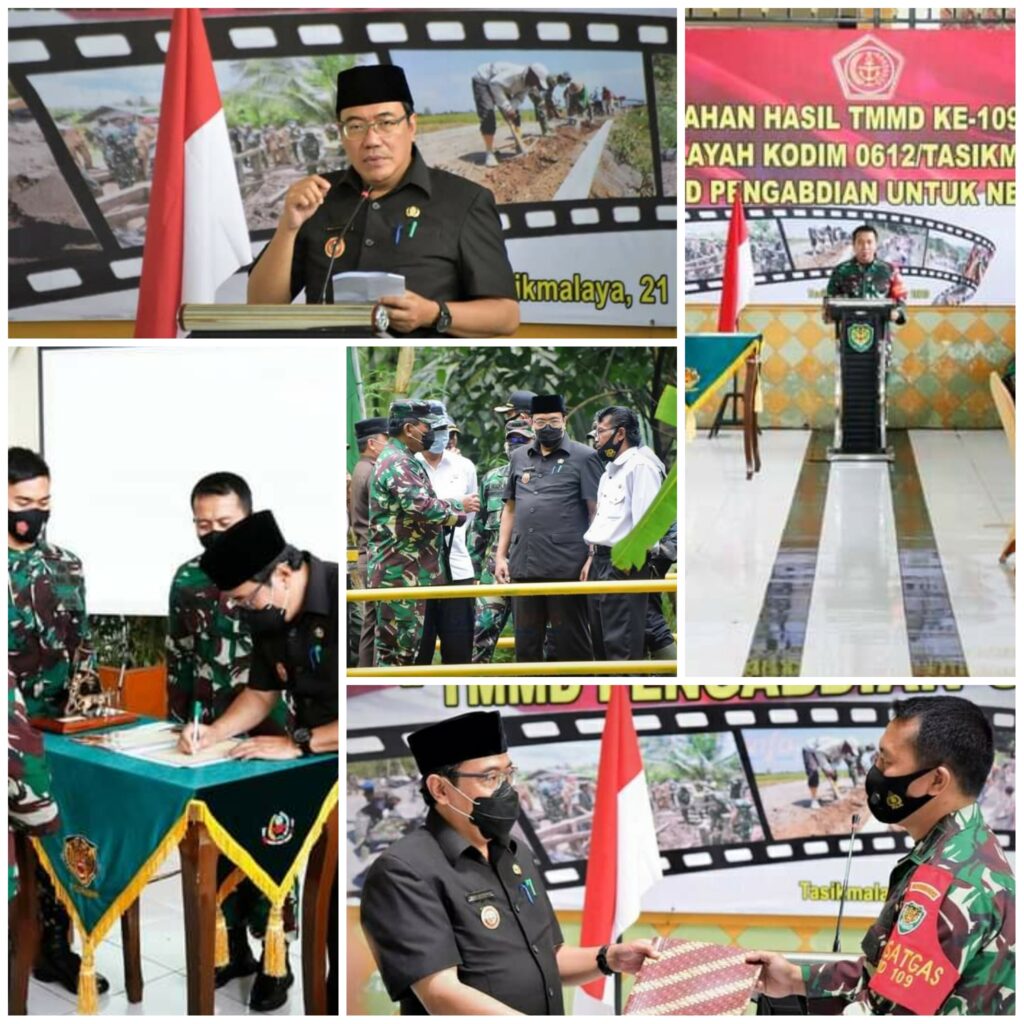 INOVATIF89.COM , TASIKMALAYA — Penjabat sementara (Pjs) Bupati Tasikmalaya, Dr. Hening Widiatmoko, MA, menghadiri penutupan program TNI Manunggal Membangun Desa (TMMD) Ke -109 Tahun Anggaran (TA) 2020 dengan tema “TMMD Pengabdian Untuk Negeri”, bertempat di Aula Desa Mekarsari, Kecamatan Kadipaten, Kabupaten Tasikmalaya, Provinsi Jawa Barat, Rabu (21/10/2020).