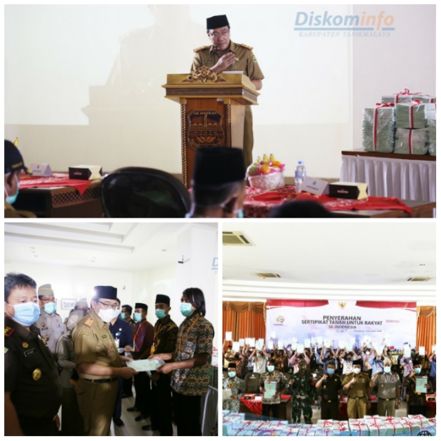 Dalam kesempatan yang sama Kepala ATR/BPN Kabupaten Tasikmalaya Suwardi mengungkapkan, pihaknya akan terus bekerja keras untuk meningkatkan percepatan penyerahan sertipikat tanah di Kab. Tasikmalaya baik melalui kegiatan PTSL, Redistribusi Tanah, BMN, dan Pemprov. (0089)