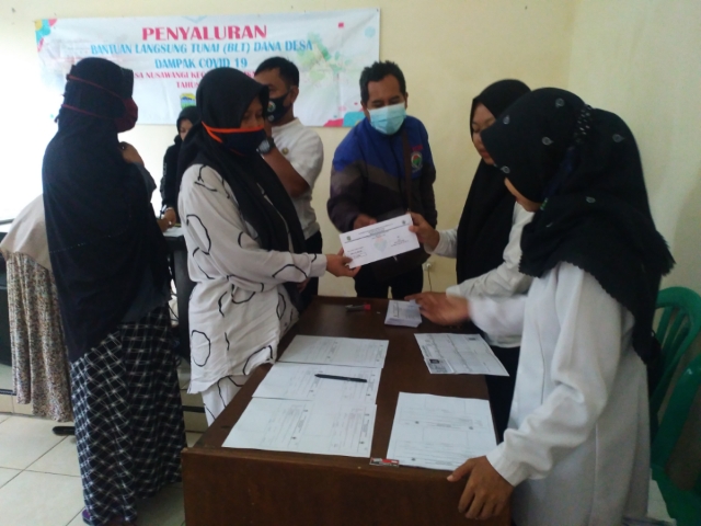 Proses pelaksanaan penyaluran dilakukan Sekretaris Desa Heni Sumiyati didampingi oleh Kaur Keuangan, Kaur TU, Kasi Kesejahteraan dan Perangkat desa lainnya.