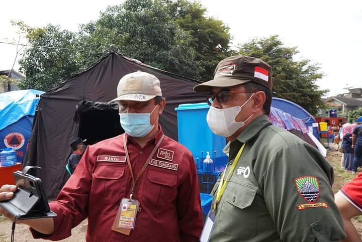 Kepala Diskominfosanditik Dr. Iwa Kuswaeri, MM, bersama Kepala Bidang Komunikasi Diskominfosanditik Kabupaten Sumedang Drs. Wahyu Kusdiarto mengikuti kegiatan Webinar tersebut yang bertempat di posko pengungsian bencana longsor Kecamatan Cimanggung Kabupaten Sumedang Provinsi Jawa Barat, Jum’at (22/01/2021).