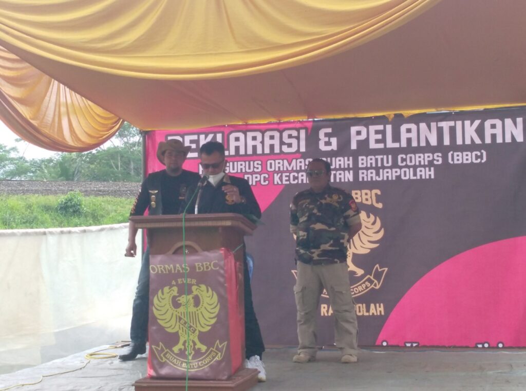 Inovatif89.com, TASIKMALAYA — Ketua umum Dewan Pimpinan Daerah (DPD) Organisasi Masyarakat (Ormas) Buah Batu Corps (BBC) Kabupaten Tasikmalaya H. Asep Saripudin resmi mendeklarasikan dan melantik pengurus Ormas BBC Dewan Pimpinan Cabang (DPC) Kecamatan dan Ranting se-wilayah Kecamatan Rajapolah priode 2021 – 2026, bertempat di Sekretariat DPC Rajapolah Kp. Panembong Desa Manggungsari Kecamatan Rajapolah Kabupaten Tasikmalaya Provinsi Jawa Barat, Minggu (14/02/2021).