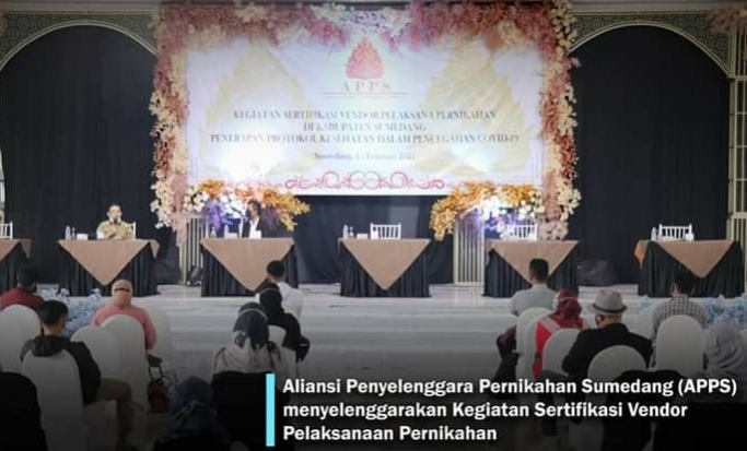 Inovatif89.com, SUMEDANG — Aliansi Penyelenggara Pernikahan Sumedang (APPS) menyelenggarakan kegiatan Sertifikasi Vendor Pelaksanaan Pernikahan di Kabupaten Sumedang, bertempat di Gedung Nusantara Sumedang Provinsi Jawa Barat, Senin (15/02/2021).