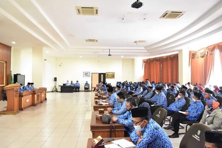 Rapat tersebut turut dihadiri Asisten Pemerintahan, Plt. Kepala BKPSDM, Kadis Kominfo, para Camat dan admin SKPD se-Kabupaten Tasikmalaya. (0089).