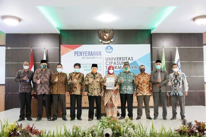 TASIKMALAYA — Penyerahan SK Kemendikbud RI diserahkan langsung oleh Ketua Lembaga Layanan Pendidikan Tinggi (LLDIKTI) Wilayah II Jabar Banten Prof. Dr. Uman Suherman, M.Pd, kepada Ketua Yayasan Hj. Pipit Komaliah, S.Pd., M.Si, yang bertempat di Aula Universitas Cipasung Desa Cipakat Kecamatan Singaparna Kabupaten Tasikamalaya Provinsi Jawa Barat, Senin (22/02/2021).